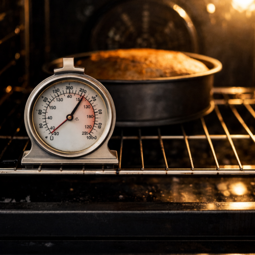 1. Buy an oven thermometer and keep it in your oven so you know its true heat . Don’t put things in until the temperature on your oven thermometer is stable. Drop the temperature on your oven dial by 20’C if it is fan-forced. Ideally put cakes as close to the middle of the oven as possible.  Rotate cakes and biscuits during cooking so you get to know any hot or cold spots.