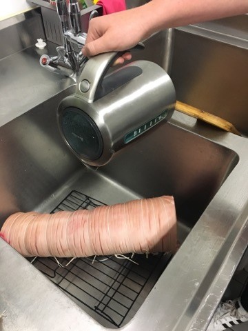 Place the pork in a colander or on a rack in the sink and pour over a kettle full of boiling water.